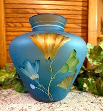 Horizon Collection Fenton** "GINKO" ON INDIGO BLUE SATIN 8" VASE**Limited...2009