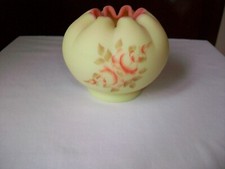 Fenton Glass Hand Painted Burmese Vase D Cutshaw Pie Crust Rim Uranium GLOWS