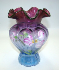 Fenton**ROYAL PURPLE HAND PAINTED YENOWINE VASE**QVC Exclusive 2000
