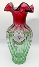 Fenton-Cranberry Mary Gregory Hand Painted Ruffled Vase Signed 951/2000 1547-B9