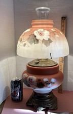Antique Beautiful Victorian Mount Washington Glass Floral Glass Lamp 18” T