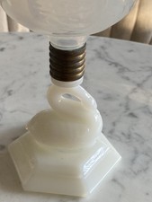 HTF Early FENTON Glass WHITE OPALESCENT Satin SWIRL FEATHER 1 Piece FAIRY LAMP