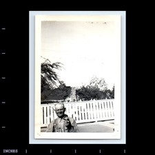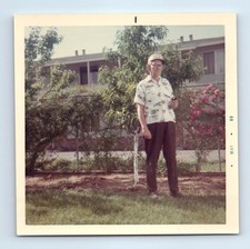 Old Vintage Square Color Photo SOLO OLDER MAN SMOKING TOBACCO PIPE IN YARD