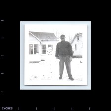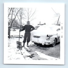 Old Vintage Square Photo SOLO MAN SNOW SHOVEL TOBACCO PIPE CLASSIC CAR 1956