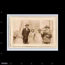 Old Vintage Photo MEN TOBACCO PIPE WOMEN GIRL STANDING OUTSIDE SNAPSHOT