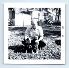 Old Vintage Square Photo SOLO MAN SMOKING TOBACCO PIPE DOGS YARD 1955
