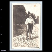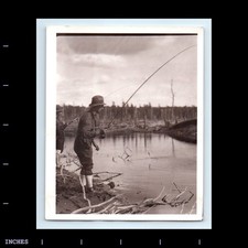 Vintage Photo MAN SMOKING TOBACCO PIPE FISH AND FISHING POLE