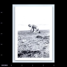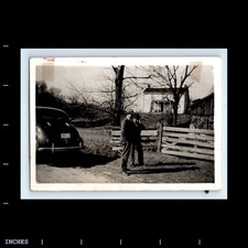 Vintage 1940s 50s Snapshot Photo Young Man Smoking Pipe Rural Farm Landscape