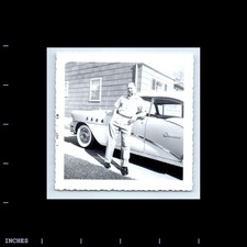 Vintage Square Photo MAN SMOKING TOBACCO PIPE CLASSIC CAR 1955 BUICK CENTURY