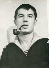 Handsome young man smoking pipe NAVY sailor portrait gay int ussr vtg photo