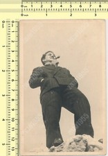 Old Vintage Photo SOLO MAN SMOKING TOBACCO PIPE FISHERMAN HAT COAT SNAPSHOT