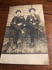 Vintage Men Posing Smoking Pipes & Hats CK Real Photo Post Card RPPC