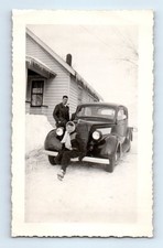 Old Vintage Photo 1935 FORD MAN SMOKING TOBACCO PIPE TEEN SNOW ICICLES