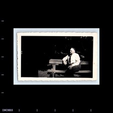 Old Vintage Photo MAN SMOKING TOBACCO PIPE ON BENCH