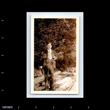 PH1850 Nicely Dressed Man Smoking Tobacco Pipe Vintage Snapshot Photo
