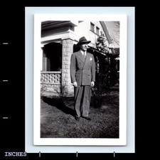 Old Vintage Photo MAN SUIT HAT SMOKING TOBACCO PIPE OUTSIDE HOUSE