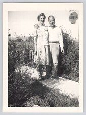 Vintage Photo Advertising Shell Gasoline Sign Couple Posing Name On Back 1946