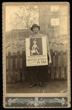 Victorian Banner Lady Dress Holding Advertising Sign Rare Antique Photo 1800s
