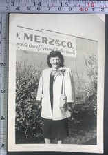 Young Woman Coat Gloves Merz Advertising Sign Vintage BW Photo Snapshot