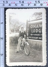 Young Man Bicycle Light Bike Advertising Sign Vintage BW Photo Snapshot