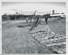1962 Press Photo Man holding an advertising sign for an airplane - afa19322