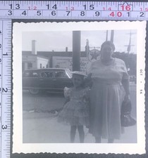 1956 Woman Child Texaco Advertising Sign in Background BW Photo Snapshot