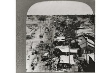 c1920's Bird's Eye View Of Main Street Rickshaw Peking China Vintage Photo