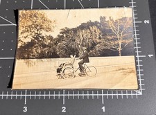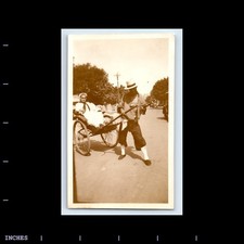 1900s White Woman w/ Black African American Man BICYCLE Rickshaw Vtg PHOTO