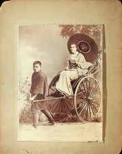 Antique Rickshaw Cabinet Card Nagasaki Japan European American White Man Woman