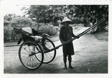 Old Vintage Photo ASIAN MAN RICKSHAW DRIVER SOLDIER 1940S POST WW2 SNAPSHOT