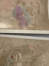 x2 Antique Tinted Albumen Photos Japanese Scenes Rickshaw Kimono Parasol ++