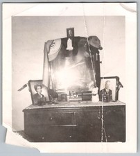 Vtg B&W Snapshot Dresser Vanity With Framed Photos Man Woman Teddy Bear 1948