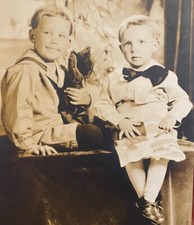 Antique Cabinet Photo Boys Stuffed Teddy Bear Dark Brown G. Walter St. Claire