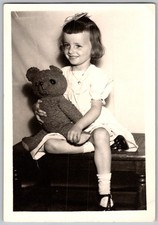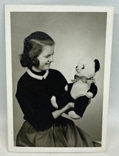 Vtg 1950s Photo Girl With Rubber Nosed Teddy Bear Rushton