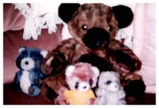 1980s Plush Teddy Bears Stuffed Animals Brown Blue Pink Gray Vintage Photo