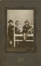 Antique Mounted Photograph Children Sitting On Steps Holding Teddy Bears