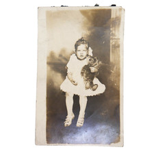 Antique Vintage Ephemera Original Old Photo 1922 Girl w/ Toy Teddy Bear