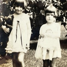 Sisters Portrait Dresses Ringlets Old Bear Steiff ? Moberly MD Early 1900s