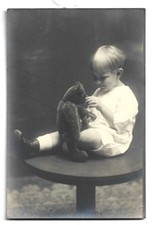 Vintage 1930s Young Baby Boy Teddy Bear Stuffed Animal Original Photo P11g26