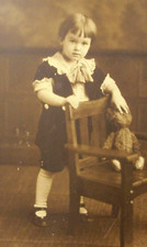 Old Vintage Photo SOLO BOY UNIFORM STUFFED ANIMAL TEDDY BEAR ROCKING CHAIR