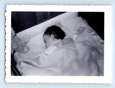 Vintage Black and White Photo Child Boy Sleeping Teddy Bear Stuffed Animal 54