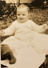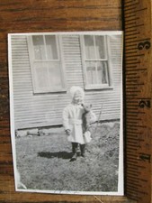c1940's Cute Baby Dress White Teddy Bear Radio American Vintage Snapshot Photo