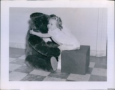 1937 Photo Little Girl Hugs Stuffed Teddy Bear Bigger Than She Is Children 8X10