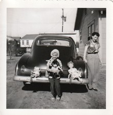 Vintage Photo Classic Cars Road Trip with Dolls & Teddy Bear Mommy Daughter Time