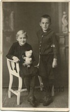 1917 Cute Adorable Little Boy & Girls Holding Teddy Bear Original Photo P20j26