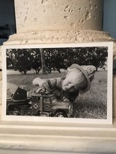 Cute Little Boy Playing In Toy Car 1950s Vintage Snapshot Photo