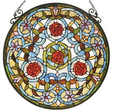 20" Stained Glass Tiffany Style Window Panel Handcrafted Round Victorian Design