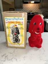 Vintage Toy Begging Dog Bank W/ Wagging Tongue In Box Collectible Rossini Japan