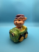 Vintage Pig Bobblehead Coin Bank Ceramic Toy Car Mid Century 1950s Novelty