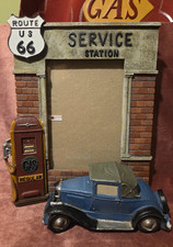 VTG 4.5" X 6.5" Resin Route 66 Service Station Photo Frame W/ VTG Car &Gas Pump
